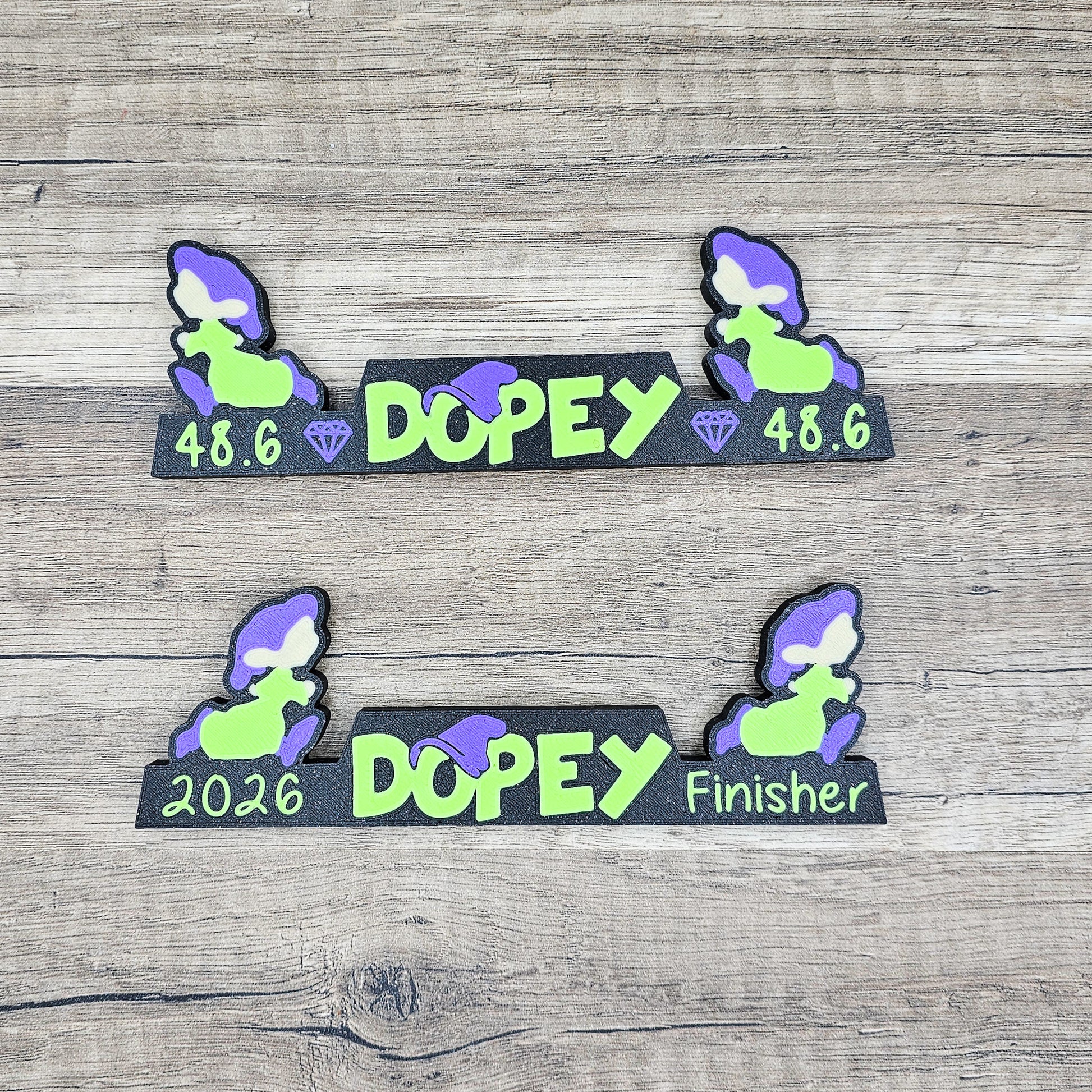 Designed with Dopey runners in mind, this piece is a meaningful way to showcase your finish-line photo, race weekend memories, or medal moment. When assembled, the two sides create a single framed display for photos, prints, or small artwork. When separated, each half becomes its own independent fridge magnet, allowing you to split the set across multiple spaces or use them together as a matching pair. This display is 155mm (6 inches) wide and each piece is 8 mm deep.